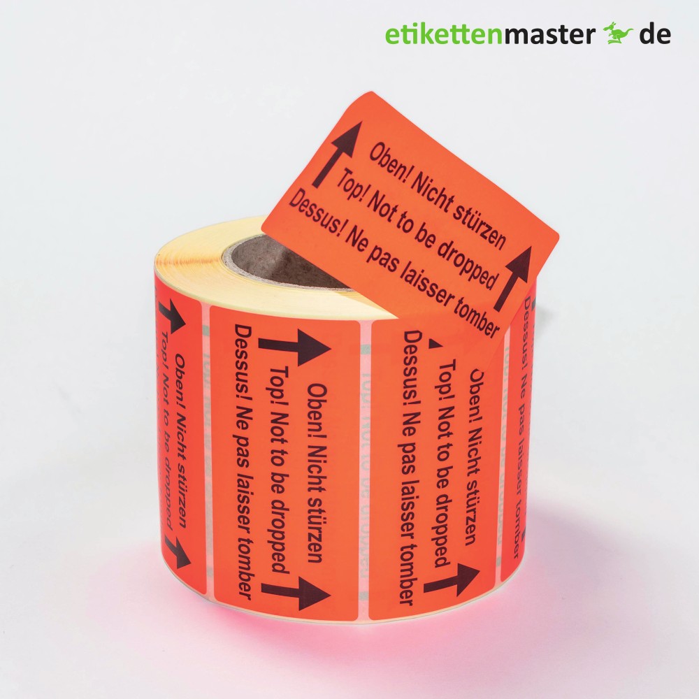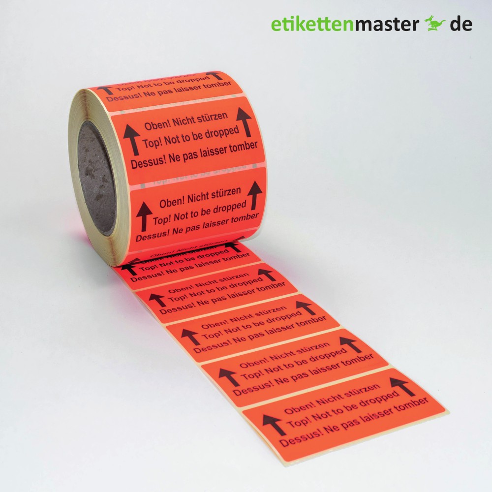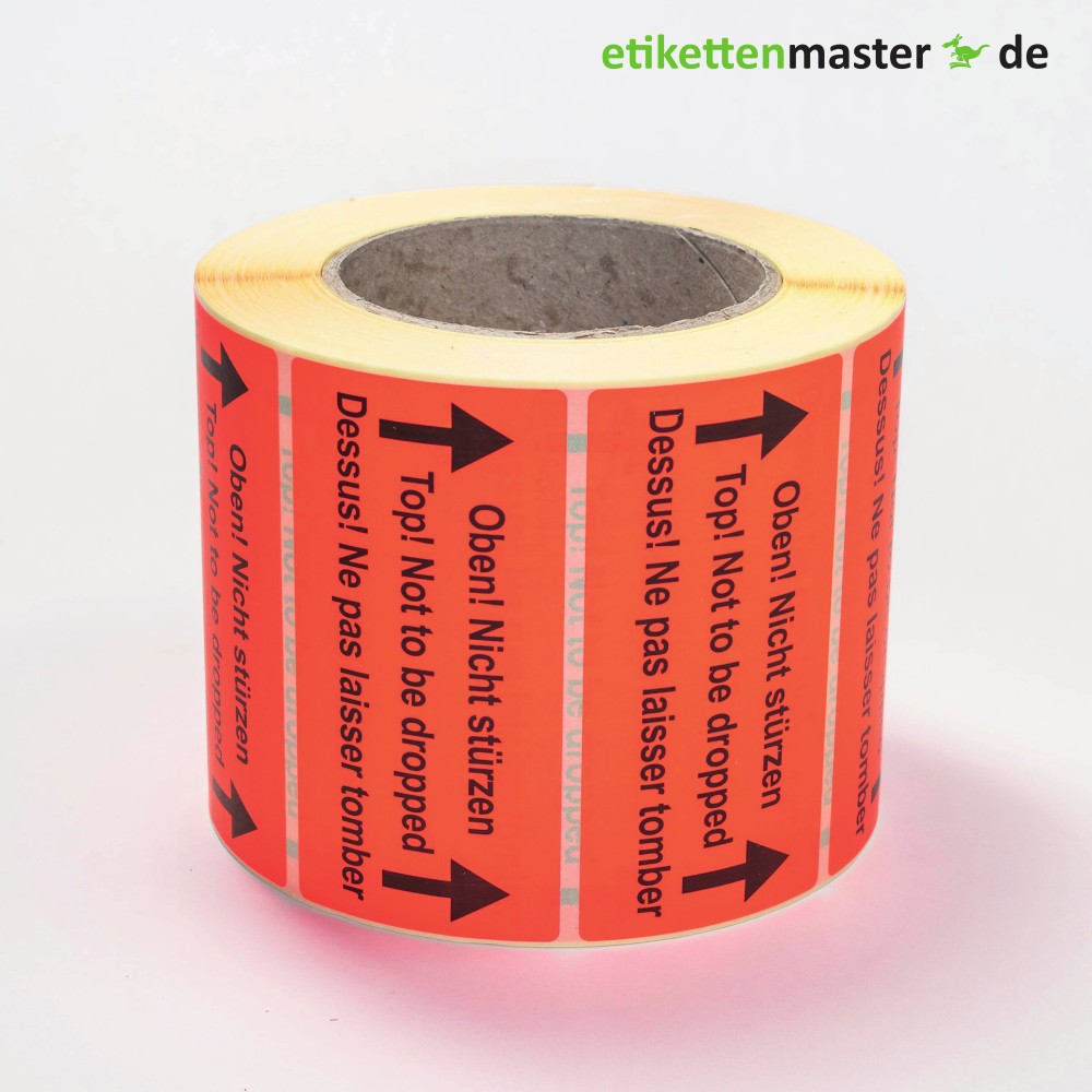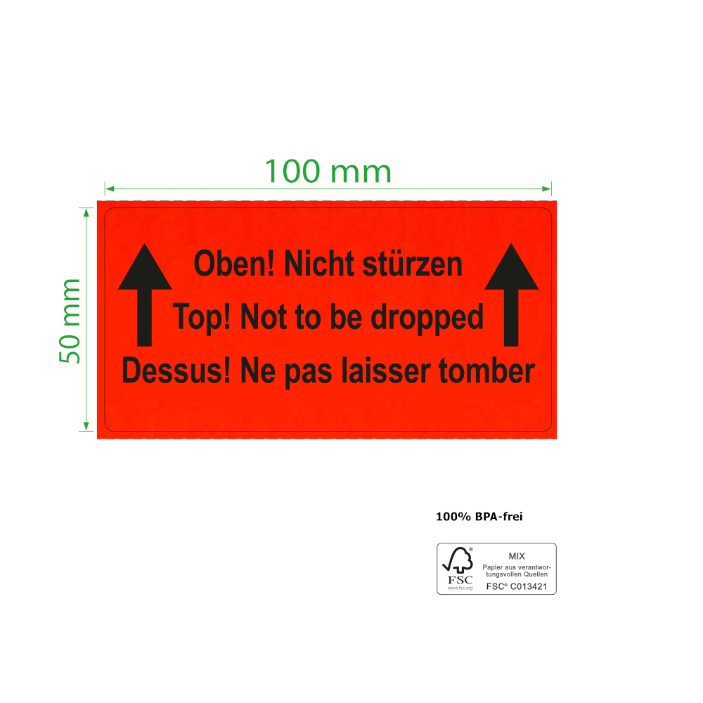 Mit diesem Versandetikett kennzeichnen Sie Ihr Paket mit "Oben! Nicht stürzen".
