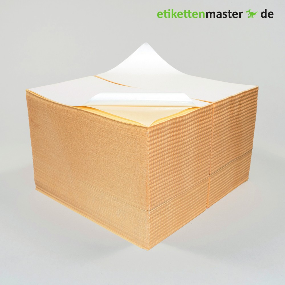 Die Selbstklebeetiketten kleben permanent auf jeder Art von Kartonagen und Versandtaschen.